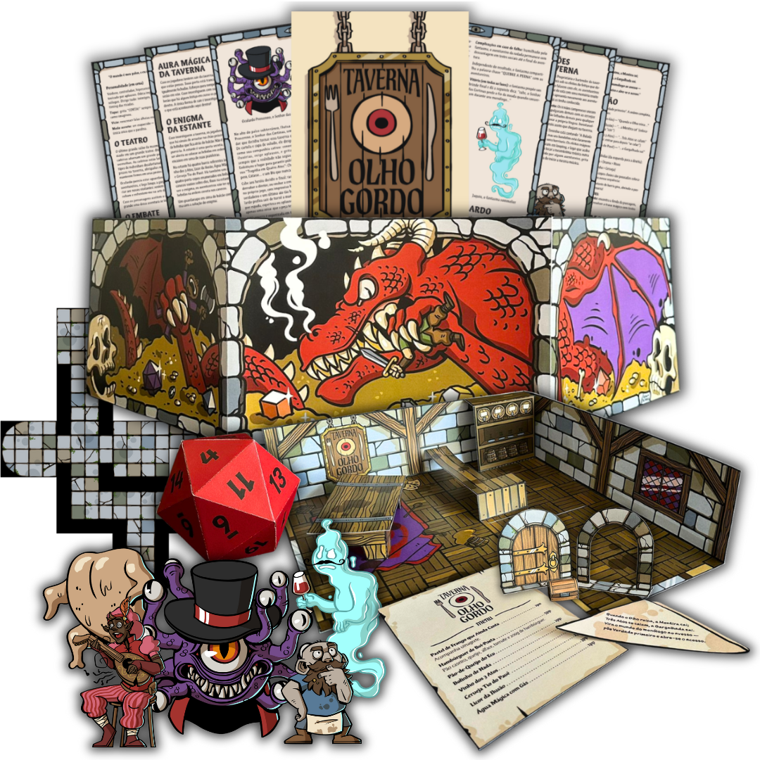 AVENTURA TAVERNA OLHO GORDO - Uma aventura curta, divertida e nonsense para você aplicar em sua mesa de RPG junto do Mapa de Taverna Pop-Up!