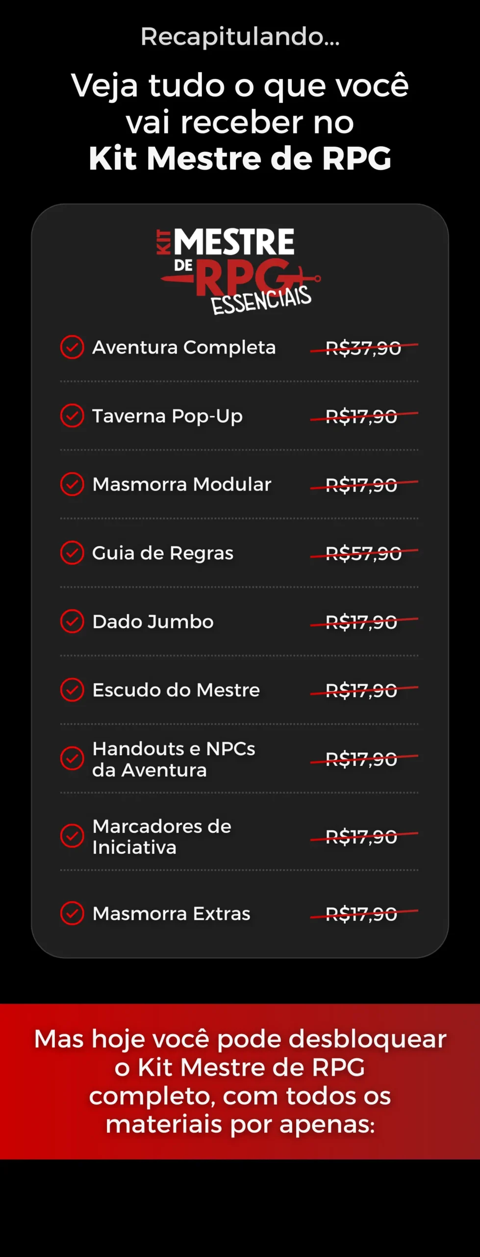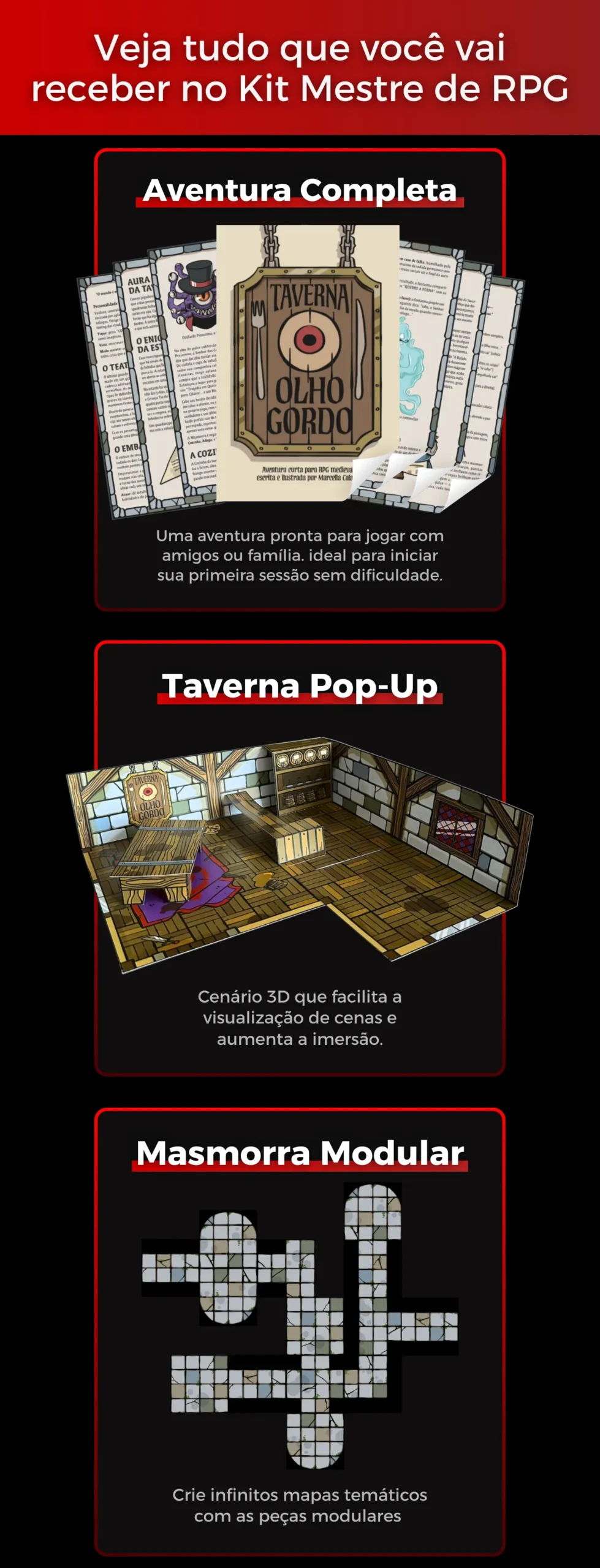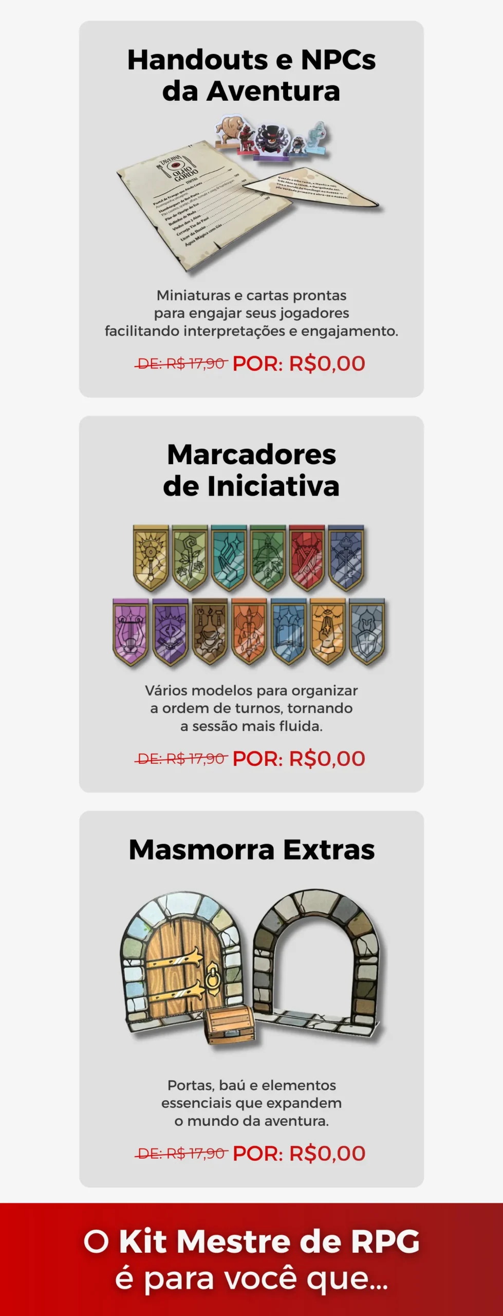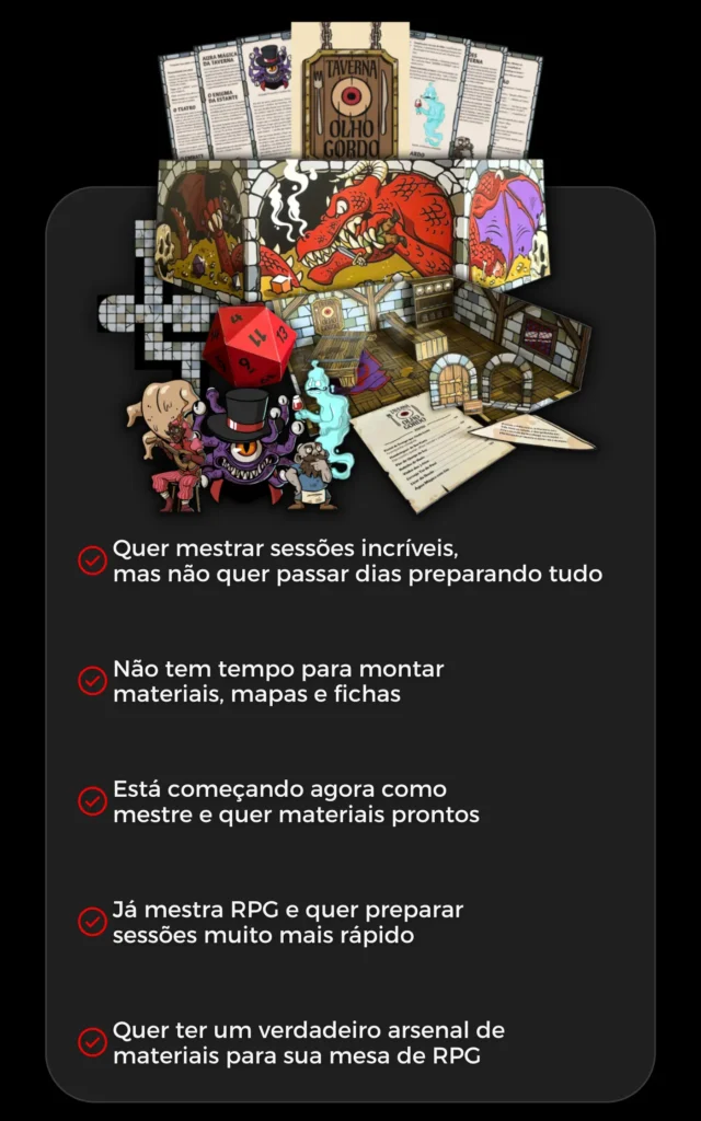 Cada detalhe do KIT foi pensado com carinho por alguém que realmente entende o universo de mesa e sabe a importância da imersão para mestres e jogadores.