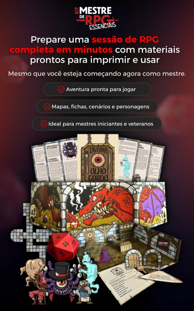 Sim! O Kit Mestre de RPG foi pensado tanto para quem nunca jogou RPG quanto para quem já conhece.